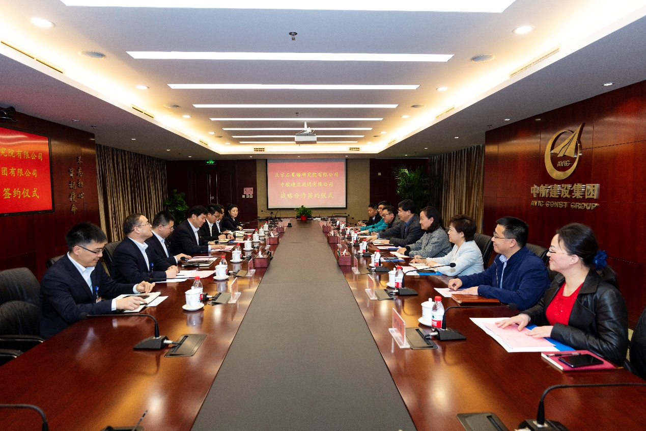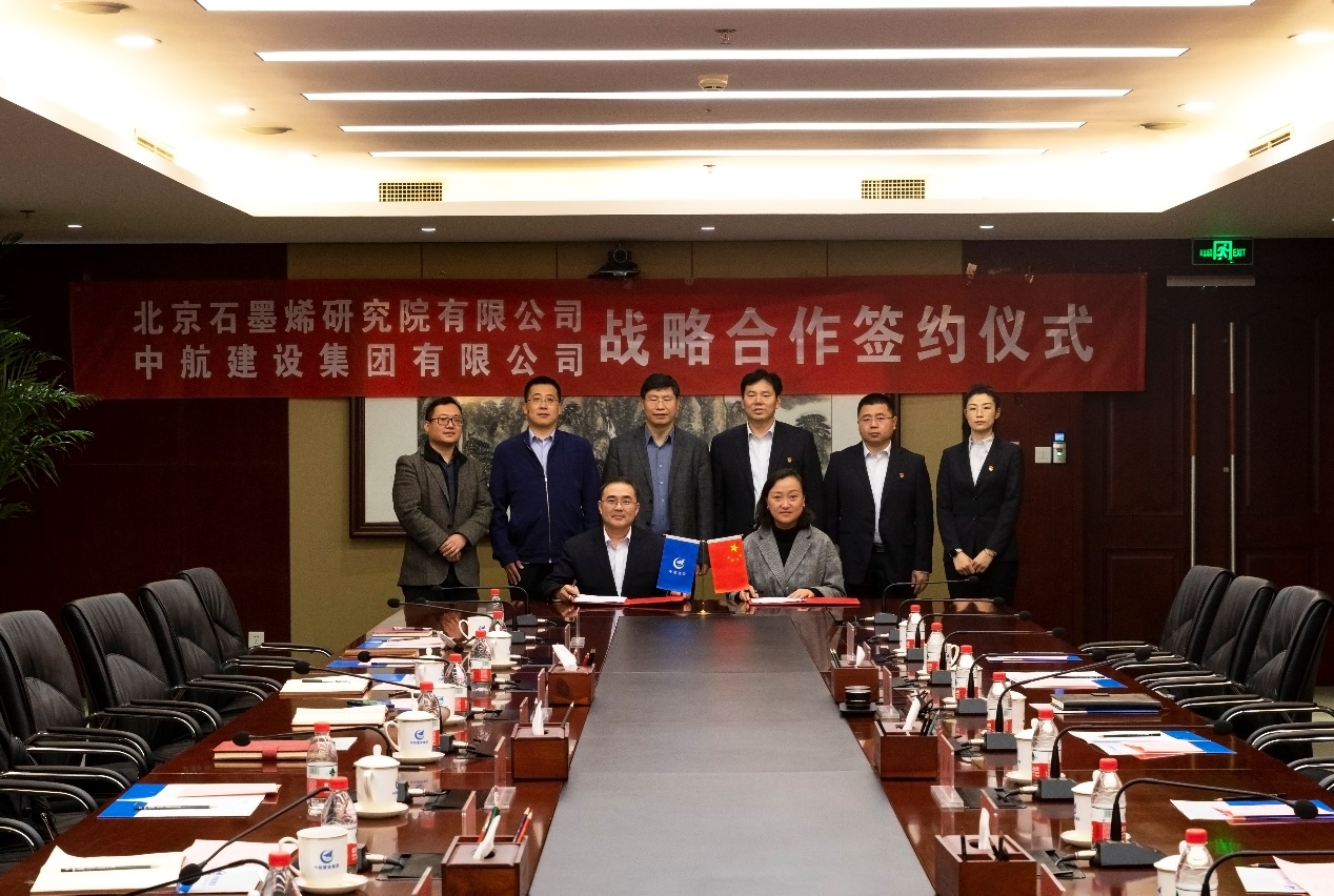 北京石墨烯研究院有限公司筹备组组长张华,筹备组副组长魏迪,研究院相关部门领导,中航建设集团常务副总经理陈清,副总经理、总工程师陈劲,副总经理宋利坡,副总经理郝以朋,集团公司相关部室领导出席签约仪式。